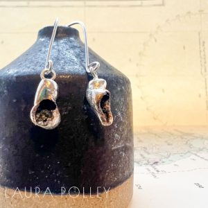 What makes this collection so distinct is not only its design but the method of creation. The silver undergoes a transformative journey, cast into the salty depths of Atlantic waters. Depending on many factors the resulting shapes can vary dramatically. Sometimes the castings resemble sea beans, those mysterious, smooth seeds that drift across oceans, or they might look like a splash of water frozen in time, fragments of seaweed swaying with the tide, or even the rough textures of barnacles and rocks that line the Cornish coast.